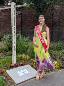 Traineefirefighterwith Mary Jennings (22) from Waltham near Grimsby with the Peace pole in coventry canal basin
