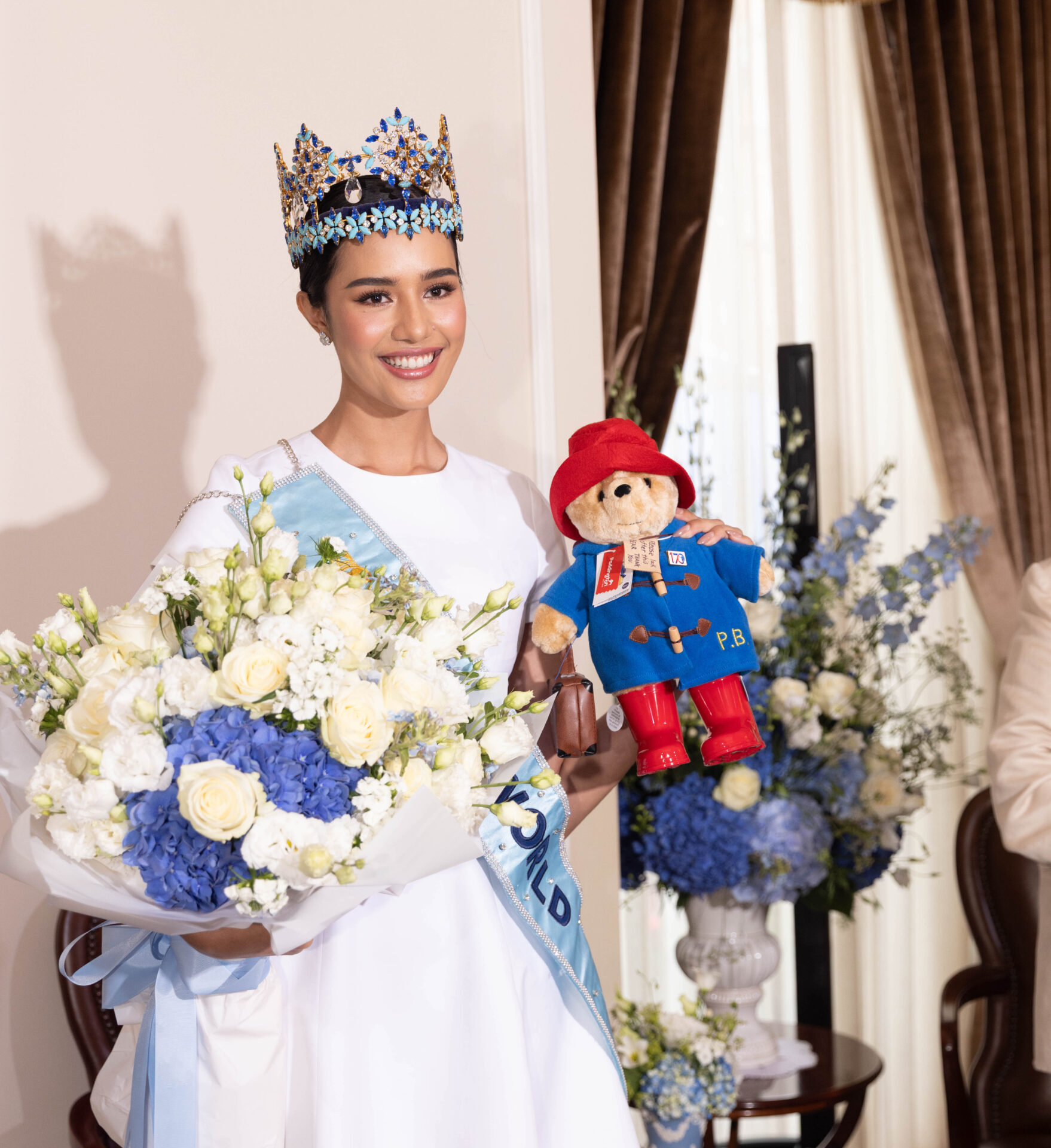 PADDINGTONBEARWITHMISSWORLDFROMTHAILANDSAMBASSADORWIFE